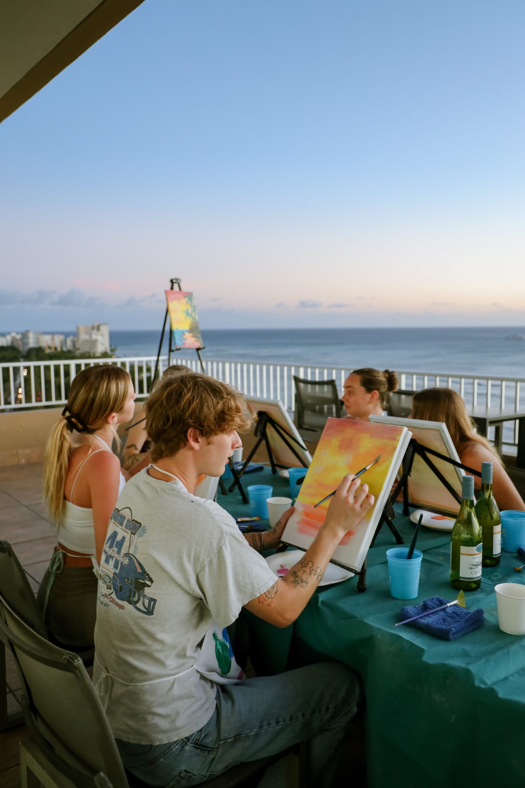 Paint Pāʻina & The Twin Fin Hotel, Waikiki Oceanfront – Paint and Sip 🎨 BOOK NOW🖌or 📞 808 497-7704 🍷